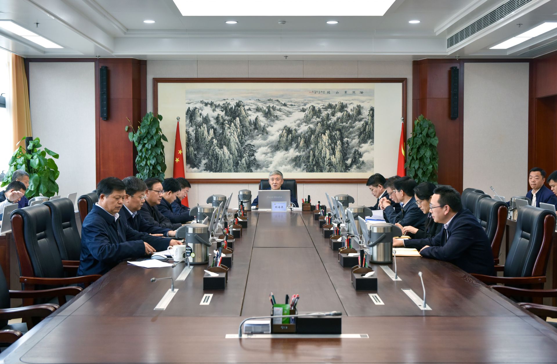 图为省委常委、省纪委书记、省监委主任刘海泉主持会议并讲话