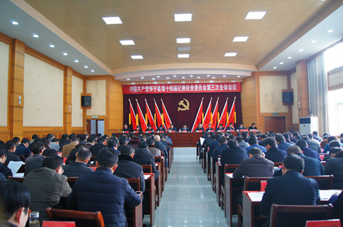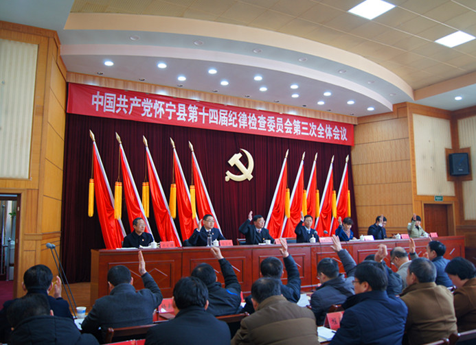2月26日,中共怀宁县第十四届纪律检查委员会召开第三次全体会议,深入学习贯彻习近平新时代中国特色社会主义思想,全面贯彻落实党的十九大和十九届一中、二中全会精神,按照中央纪委十九届二次全会、省纪委十届三次全会、市纪委十一届三次全会部署和县委十四届七次全会要求,总结我县2017年纪检监察工作,研究部署2018年任务。县委书记郭家满出席会议并讲话,县领导余学峰、董晓月、方淼杰、谢晓国、李小龙、李木林、王良宜、梅静、程廷灿、马宜来等出席会议,县委常委、纪委书记潘忠苗主持会议,并代表县纪委常委会作工作报告。会议应到县纪委委员20人,实到19人,符合会议规定。
