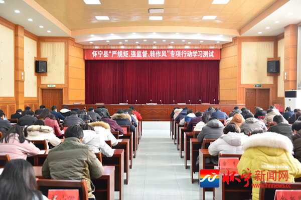3月7日、8日,怀宁县举行“严规矩、强监督、转作风”专项行动学习测试。县级领导干部及各乡镇、县直机关代表参加集中测试。各乡镇、县直单位均自行组织了测试。