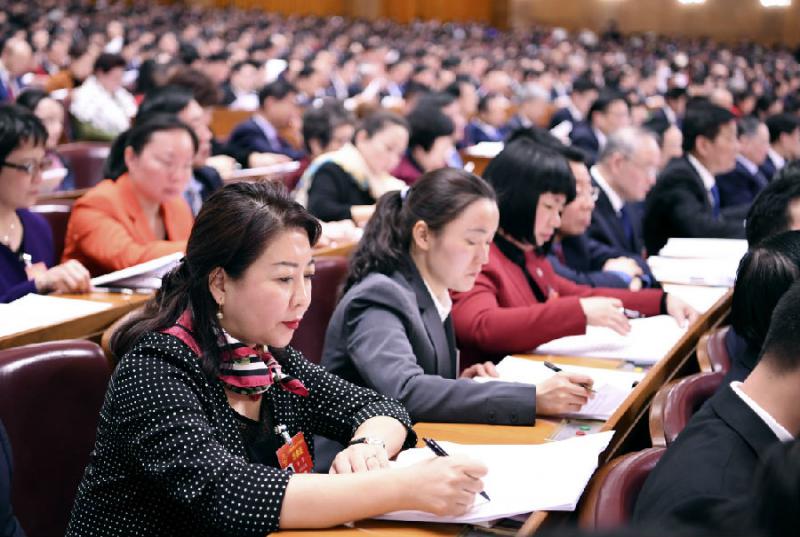3月12日,十三届全国人大二次会议在北京人民大会堂举行第三次全体会议。这是代表在认真听会。新华社记者 燕雁 摄