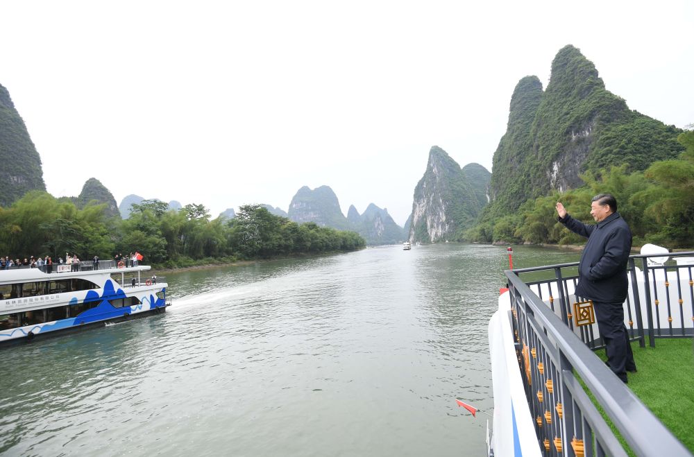 25日上午,习近平总书记来到位于广西桂林全州县才湾镇的红军长征湘江战役纪念园,向湘江战役红军烈士敬献花篮,参观红军长征湘江战役纪念馆,缅怀革命先烈、赓续共产党人精神血脉。随后,习近平来到才湾镇毛竹山村,考察推进乡村振兴、基层治理等情况。当天下午,习近平在漓江阳朔段实地了解漓江流域综合治理、生态保护等情况。(记者:张晓松、朱基钗,摄影:鞠鹏、谢环驰、申宏、殷博古)
