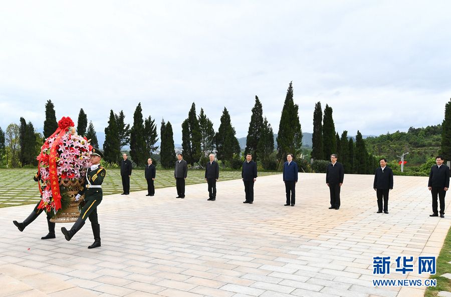 4月25日至27日,中共中央总书记、国家主席、中央军委主席习近平在广西考察。这是25日上午,习近平在位于桂林市全州县的红军长征湘江战役纪念园,向湘江战役红军烈士敬献花篮。新华社记者 谢环驰 摄