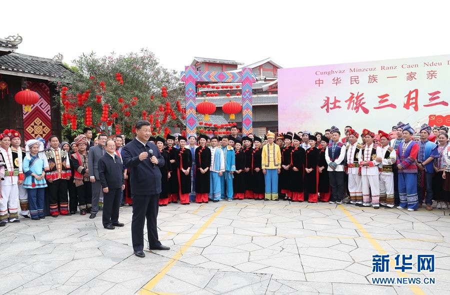 广西是我国少数民族人口最多的自治区。27日上午,习近平来到位于南宁市邕江之畔的广西民族博物馆,参观壮族文化展。博物馆外,三月三“歌圩节”壮族对歌等民族文化活动正在这里集中展示。习近平强调,广西是全国民族团结进步示范区,要继续发挥好示范带动作用。各民族共同团结进步、共同繁荣发展是中华民族的生命所在、力量所在、希望所在,在全面建设社会主义现代化国家的新征程上,一个民族都不能少,各族人民要心手相牵、团结奋进,共创中华民族的美好未来,共享民族复兴的伟大荣光。