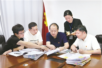 安徽省纪委监委聚焦人防等重点领域和系统,严肃查处了一批腐败案件,并督促做好“后半篇文章”,强化系统治理。图为阜阳市纪委监委案件调查组同志梳理近期查结的人防系统案件,总结查找制度漏洞。魏建巍 摄